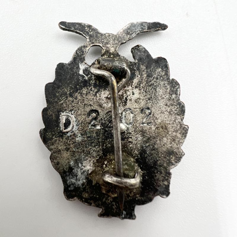 A rare original Second World War period 'Air Transport Auxiliary civilian pilot's unmarked silver ATA pin badge bearing the motto 'Aetheris Avidi' (Eager for the Air), the reverse impressed with official issue number 'D 2202'. Very good condition. Height approx 29mm.