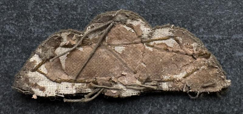 Heavily padded example with painted white parachute and wings on khaki. Removed from uniform.