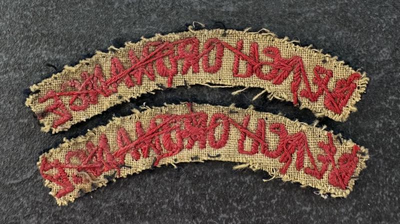 Scarcer pattern with smaller lettering and tan reverse. Matching pair. Removed from uniform.
