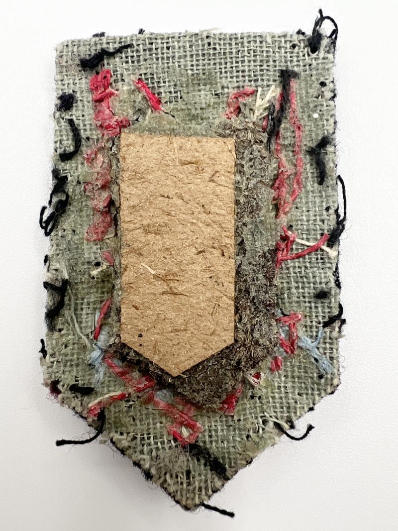 Padded cloth beret badge with bullion thread winged dagger detail. Removed from beret.