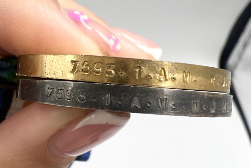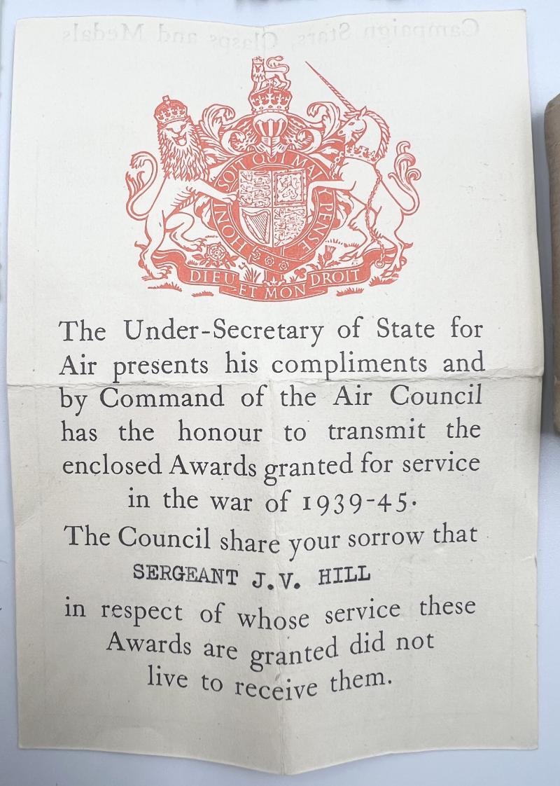 Poignant family group of medals to Sergeant John Valentine Hill together with his father's medals, W.J.HILL. WW1 medal pair to 7593 1AM W J Hill RAF.