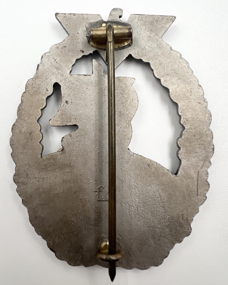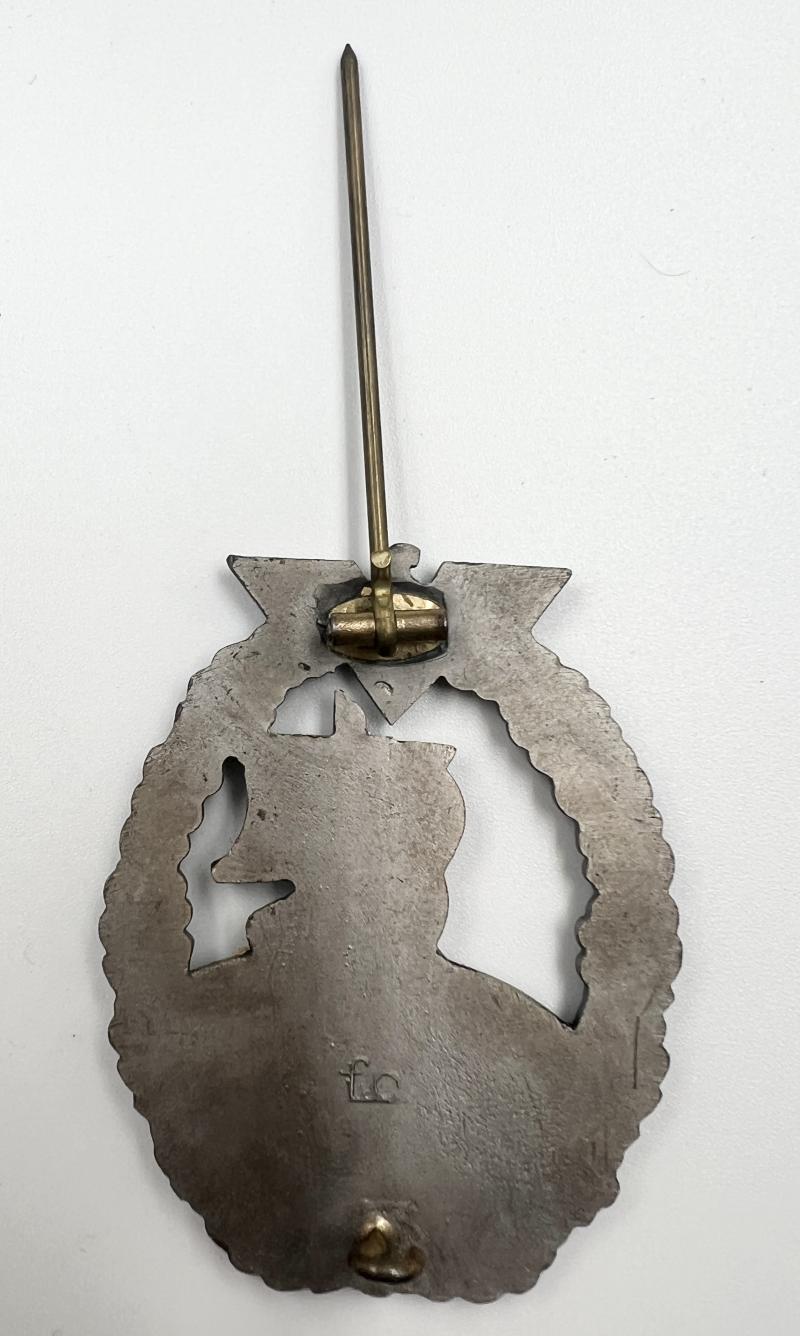 Friedrich Orth Wien made Auxiliary Cruiser badge. Perfect condition but nearly all of original finish has been absorbed.