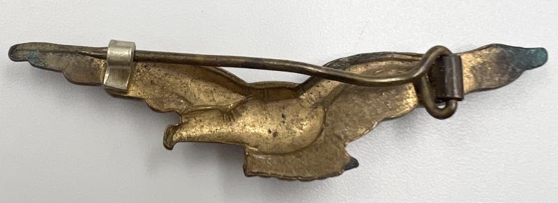 Gilt metal RAF Eagle with pin fixing. Correct hollow back and rolled catch. Worn which is nice to see for these badges. Some verdigris to front.