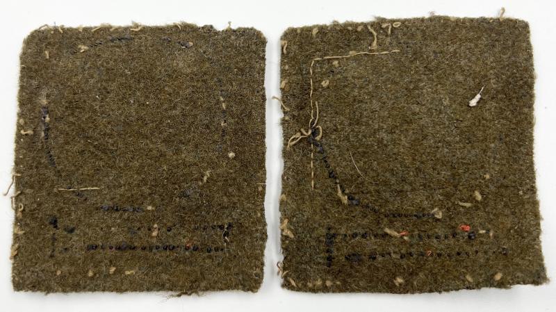 Embroidered 5th Infantry Division formation signs and black arm of service strips. On Battle Dress material.