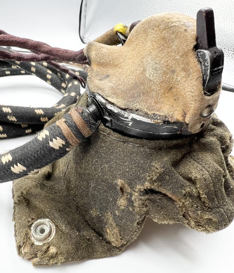 Very rare and highly desirable D Type oxygen mask, oxygen tube with adaptor, and earphones with plug.