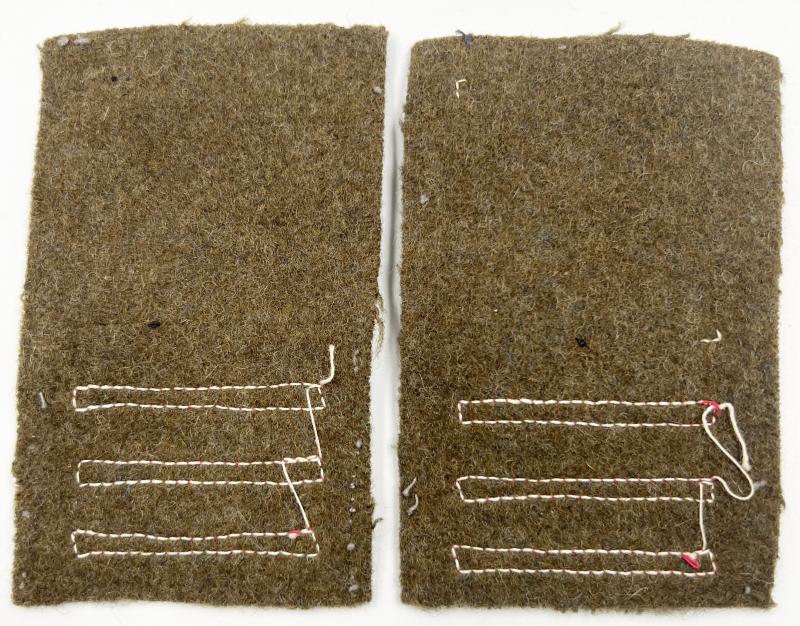 Painted formation signs now loose from the Battle Dress material to which they once mounted. Embroidered red infantry arm of service strips.