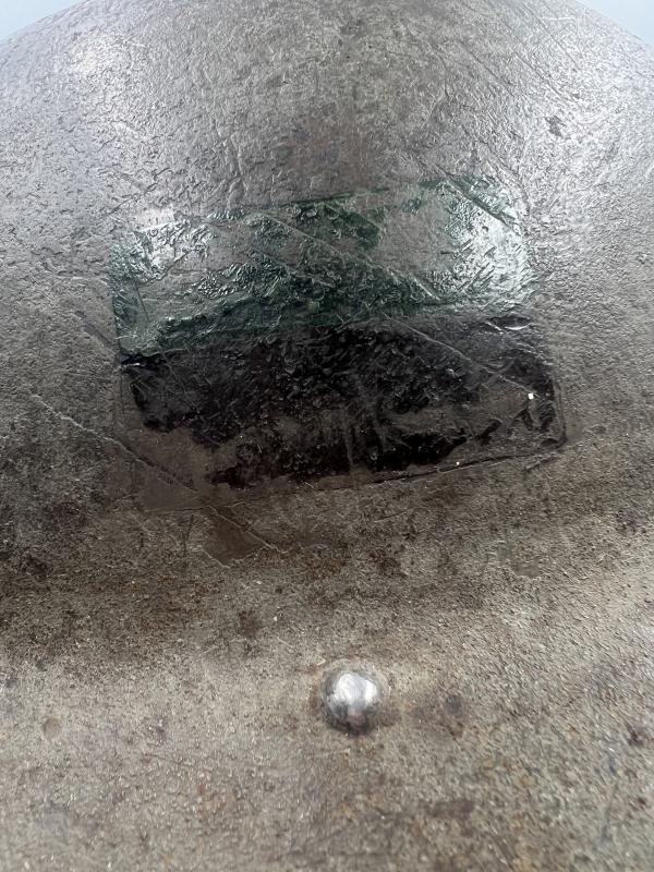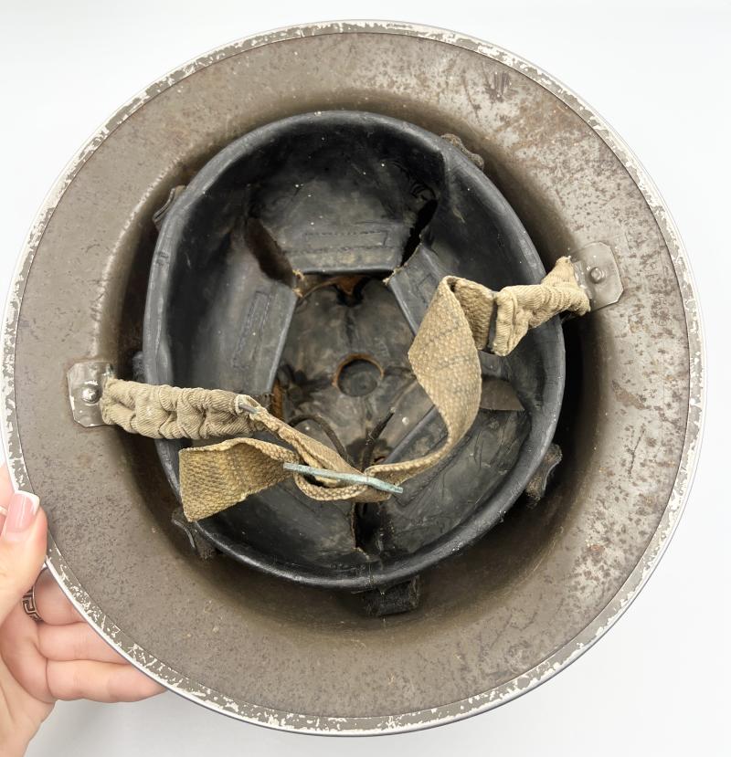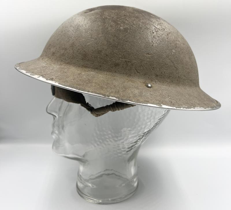 Rare early Pioneer Corps MKII helmet. 1939 dated shell, 1938 dated bales, 1938 size 7 liner. Original paint to exterior with green and black painted flash to one side. A good used example showing wear and use.