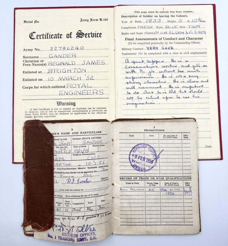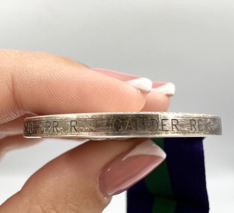 General Service Medal named to 22796240 SPR RJ CANDER RE. AB64 & Certificate of Service booklets. Has not been researched.