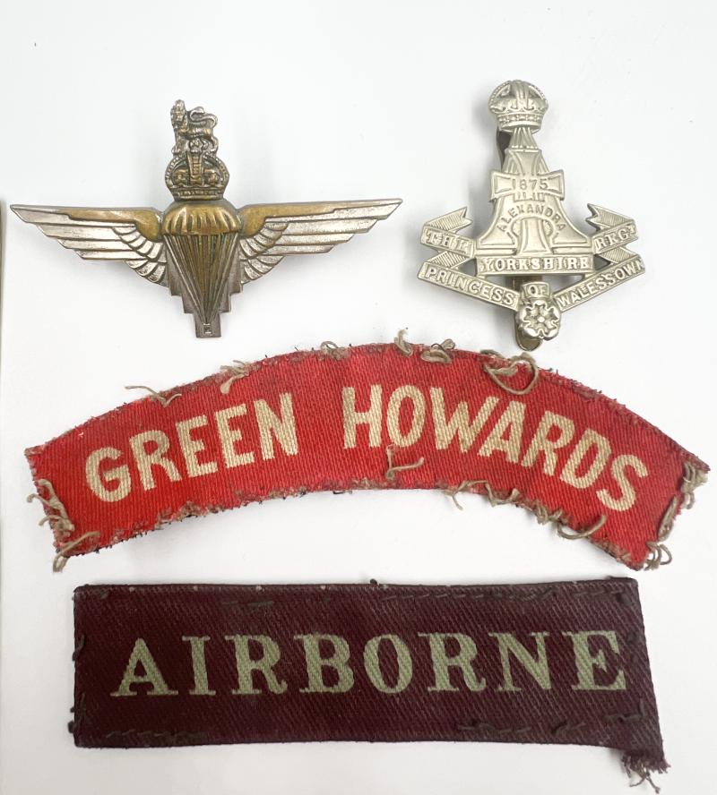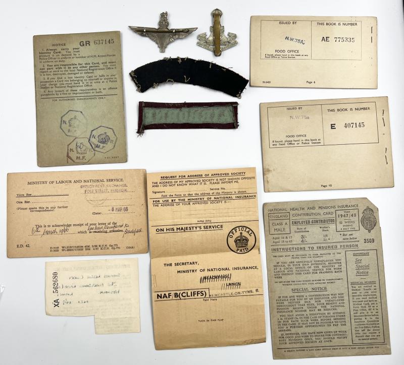 Paperwork and badge grouping found together. Formally the property of Thomas Leslie Curry. Green Howards connection possibly means this soldier served with 12th Yorkshire Battalion Parachute Regiment. Further research required. Group includes: