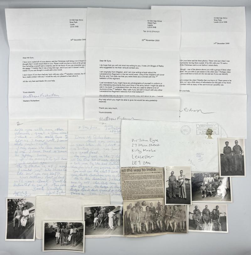 Interesting lot of items, formerly the property of John Eyre 7th Battalion Leicester Regiment. Includes: