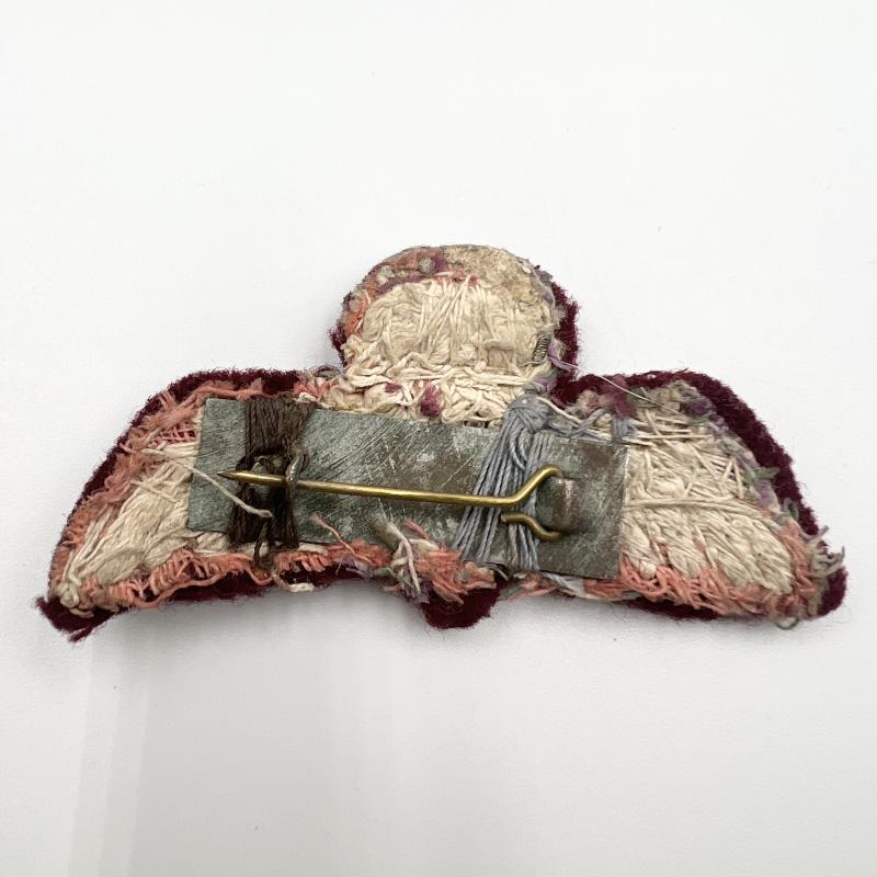 Rare silver and gold wire example on maroon backing. Pin fixing to rear. I've never seen another example.