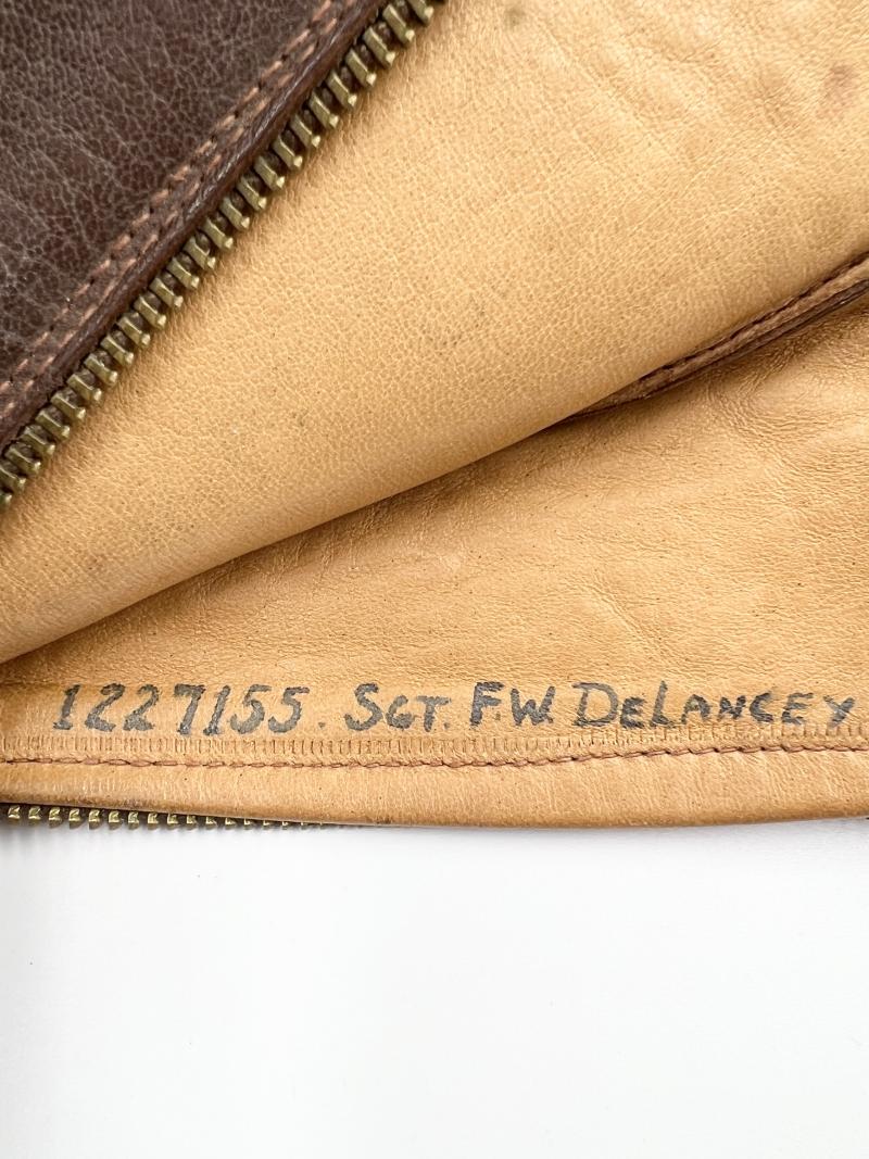 If these weren't already the best pair I've seen, the interior of both gloves is marked 1227155 Sgt F W DeLancey. I have not researched this individual yet but I will leave that to the buyer.