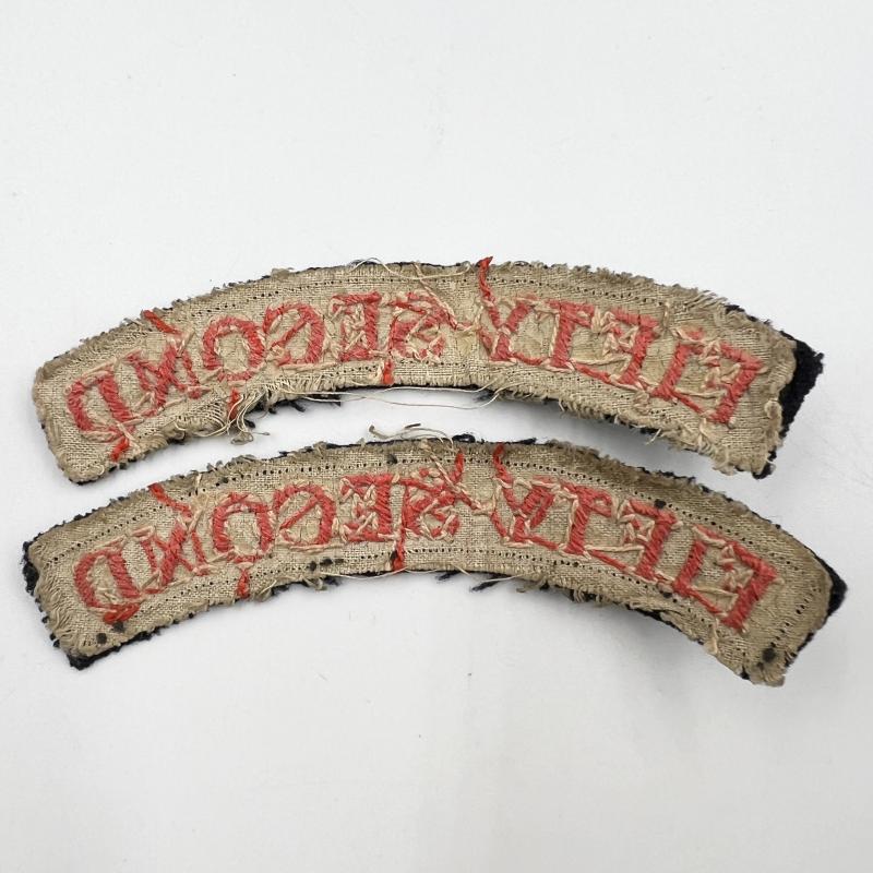 Rare unofficial shoulder titles worn by the legendary D-Day Glider unit 2nd Battalion Oxfordshire & Buckinghamshire Light Infantry. Perfect matching pair with white backing. Removed from uniform.