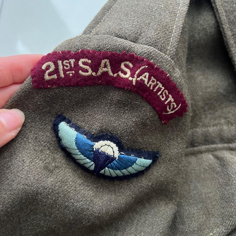 Very rare 21st SAS blouse. Wartime Australian made blouse, but post war used. 21st SAS Artists shoulder title to right arm, padded SAS parachute qualification wing to right arm and medal ribbons denoting wartime service including France & Germany Star together with War Medal with Mentioned In Despatches Oakleaf.
