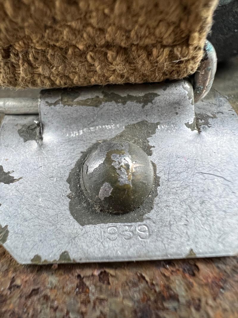 1939 dated shell, 1942 dated size 7 1/2 liner, rough painted outer with RASC transfer decal to one side. Original strap. Used with plenty of service wear and minor rust.